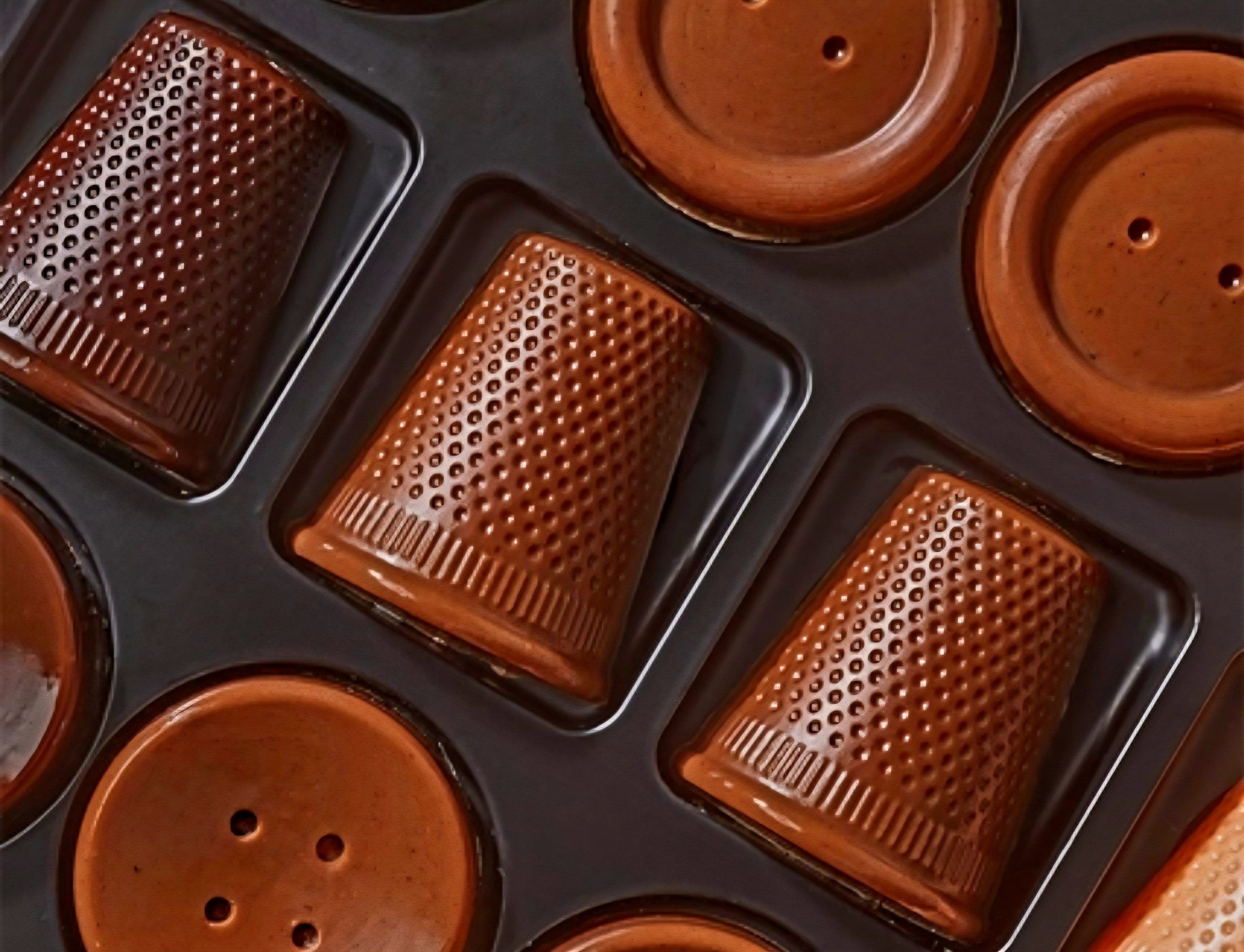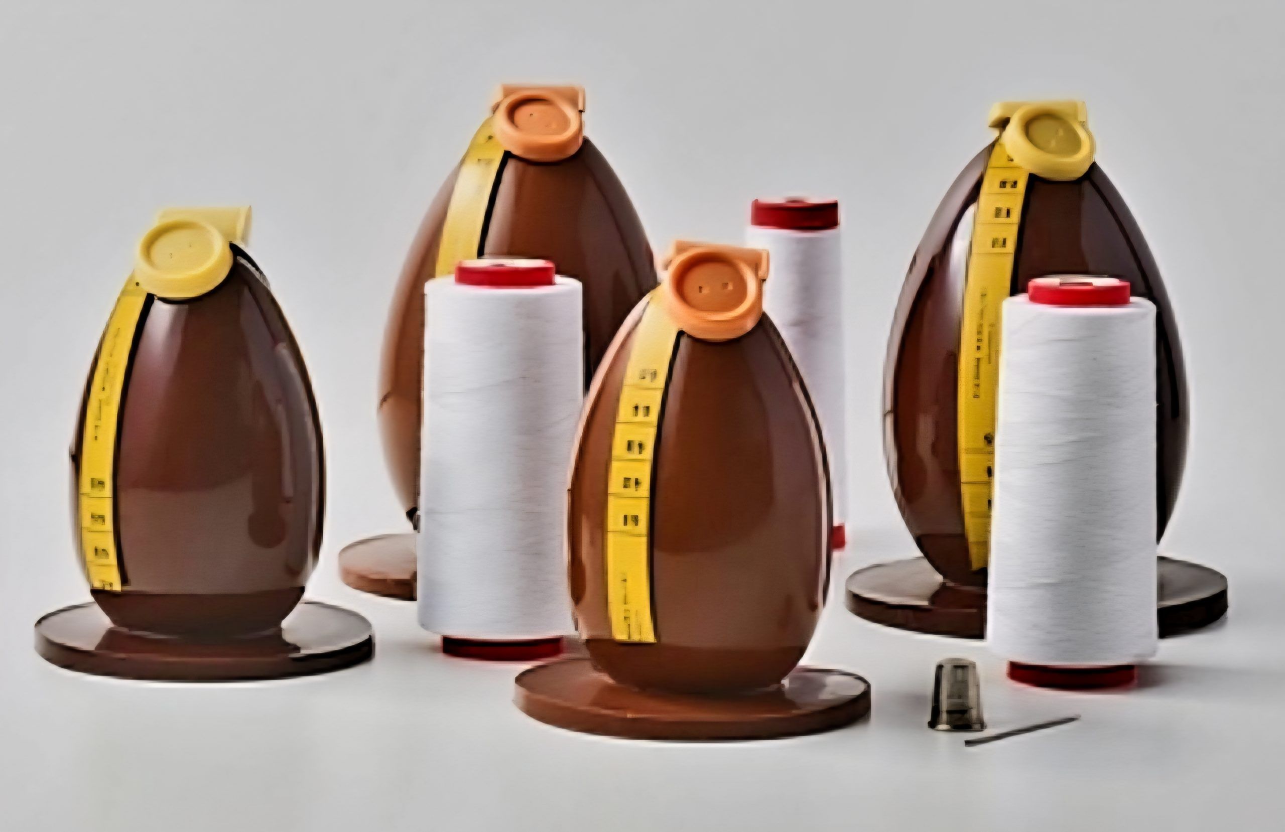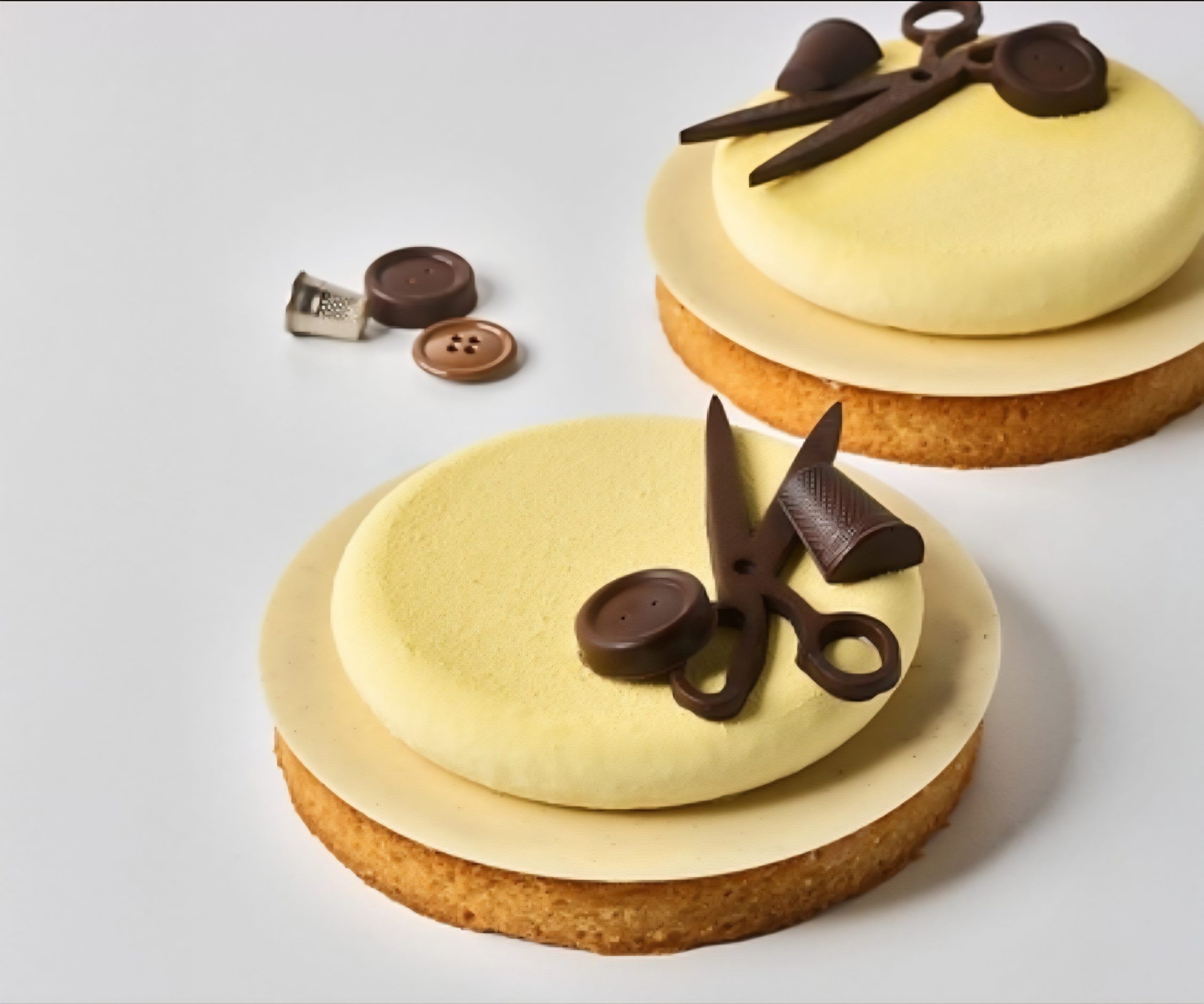 Έτσι τα ντραπέ φορέματα, οι μεζούρες, οι κουβαρίστρες, τα κουμπιά, οι δακτυλήθρες, τα ψαλίδια είναι καμωμένα από σοκολάτα που αντλούν την έμπνευσή τους από τα καθημερινά σύνεργα των ραφτών. Ακαταμάχητα τραγανές παλιομοδίτικες πραλίνες… Κάθε δημιουργία κοσμεί τη σκηνή με κομψότητα, πετυχαίνοντας την τέλεια ισορροπία μεταξύ ακρίβειας και απόλυτης απόλαυσης. Ένα παιχνίδισμα αισθήσεων που ξυπνά νοσταλγία για το χθες και την αριστεία.